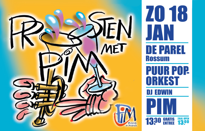 “Proosten met PIM” is inmiddels uitgegroeid tot een jaarlijkse traditie waar muziek en gezelligheid voorop staan. Deze middag biedt een uitstekende gelegenheid om elkaar weer te ontmoeten in het nieuwe jaar. Dit alles onder het genot van goede herkenbare muziek en een lekker drankje.
